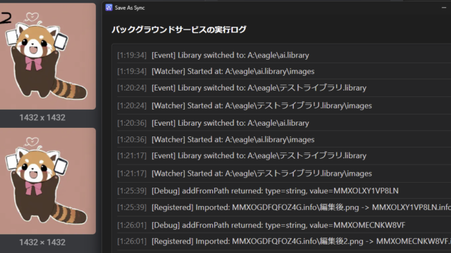 外部エディタでの「名前を付けて保存」をEagleへ自動同期!タグやフォルダ情報も丸ごと引き継ぐプラグイン『SaveAsSync』。幽霊ファイルの発生を防ぎ、インポートの手間を省きます。